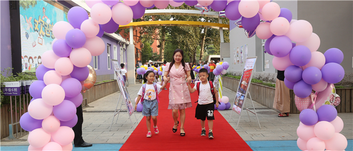 热情的横幅、喜庆的红毯、花样的气球、多彩的挂饰,把整个校园装扮得分外欢喜。
