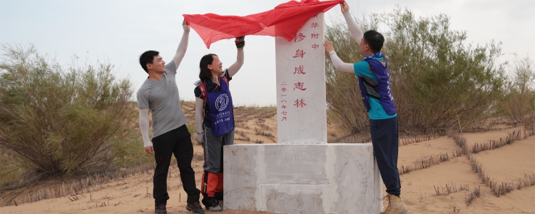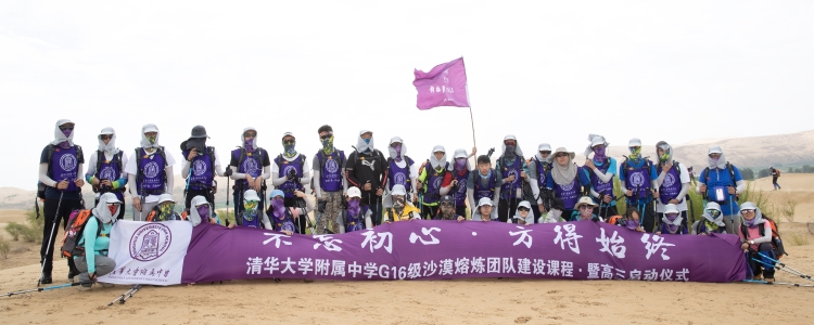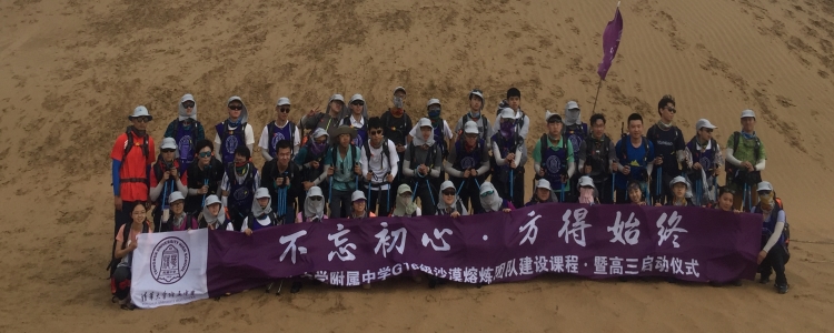 7月9日下午,高16级全体师生,一起来到库布齐沙漠,开始为期两天的沙漠穿越行动。活动伊始,干燥的沙漠风云变幻,一场突降的暴雨考验着行走的师生,不过困难并未吓倒坚强的人们,各班师生排成一队,顶着风沙穿越沙山,经过近四个小时的拼搏,走过十公里的大漠,抵达沙漠绿洲开始露营。夜幕降临,风吹走了乌云,漫天星辰展现,师生以苍茫大漠为舞台,浩瀚星空为布景,点起篝火尽情舞蹈,当焰花冲天而起,点亮苍穹,年轻学子的梦想,也随之起航。