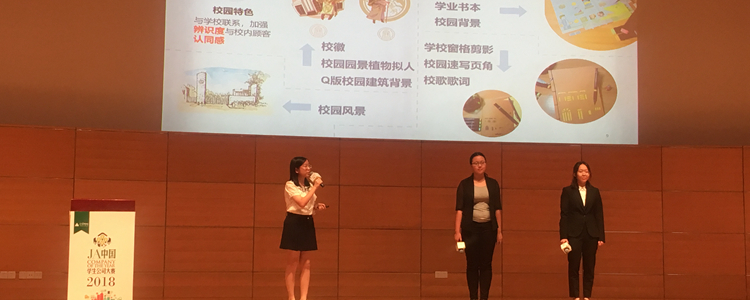 2018年7月20~22日,“JA中国学生公司大赛全国总决赛”在广州成功举办,大赛有来自北京、上海、广州、西安、成都和香港六地的多支学生公司队伍参加。皇冠体育官网高1710班张琪钰、张骕骦,高1711班王英琦三位同学组建的“附中·印象”公司经过北京地区赛的选拔,成功晋级决赛,在为期三天的全国总决赛中展现了皇冠体育官网学子的蓬勃朝气,并精彩展示了皇冠体育官网的校园文化,获得“JA中国学生公司大赛全国16强”的荣誉称号。