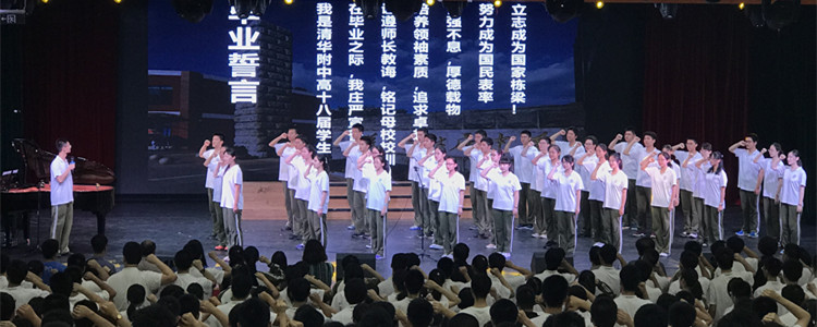 最后,在高15级毕业生冷延鹏同学的带领下,全体毕业生进行毕业宣誓。宣誓完毕后,合唱团共同唱响毕业歌曲《在此刻》和《再回首》。在动人的歌声中,2018届高中毕业典礼圆满结束。同学们手拿“写给自己二十年后的一封信”放入信箱,依次走出会场。