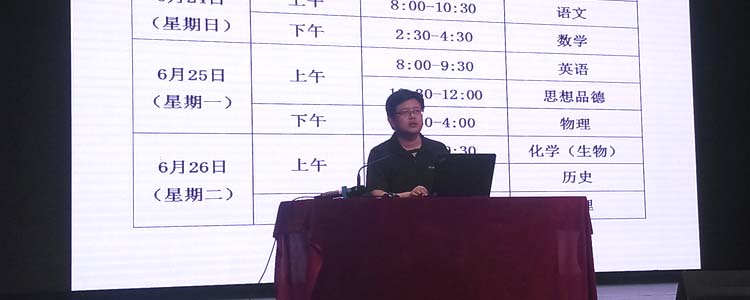 随后,张彪老师针对中考,对家长进行了考前培训。他介绍了2018年中考的基本情况,细致得从考试用具、考试流程、考试纪律等方面提出了具体的要求和需要注意的事项,并针对中考备考及考试期间的家长心态和生活作息等方面,为家长们提出了具体的建议。