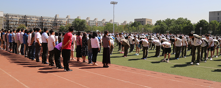 最后,高三的同学们面向老师全体鞠躬,高喊出“谢谢老师,您辛苦了!”来感谢老师们三年来的支持和陪伴。皇冠体育官网是高15级全体高三学子梦想开始的地方,也是他们为自己最初的梦想拼搏奋斗的地方。在这里,他们曾青春飞扬;在这里,他们将筑梦远航。2018年高考在即,希望这场振奋人心的加油会能够给紧张备考的附中学子加油打气,坚定信心,以最好的状态冲刺高考。