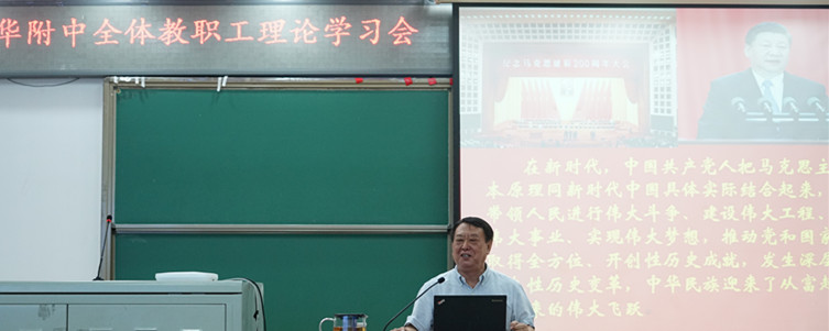 报告重点梳理了中国共产党在马克思主义的指导下,如何与中国革命,建设和改革的具体实践相结合,不断创新,建立起中国特色的社会主义理论体系,实现了马克思主义的中国化时代化,从而使我们的国家取得了一个又一个辉煌成就。在此基础上,赵教授提出在教育领域践行习近平新时代中国特色社会主义思想的一些具体要求。报告有详实的史料论证,逻辑清晰,表述准确,语言幽默,让全体教职工对党的指导思想的不断完善过程,有了全面的认识和深刻的理解,特别是体会到了马克思主义的科学性、人民性、实践性、开放性和时代性在当代中国的彰显。