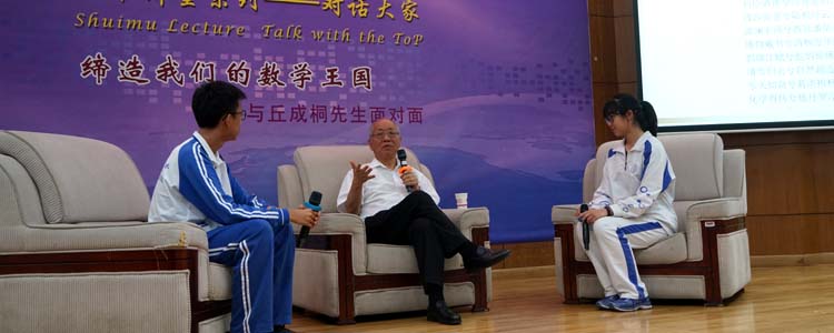 接下来,两位学生代表与丘先生进行了面对面的访谈,向丘先生请教了有关数学学习和未来规划等方面的相关问题。在场的其他学生也在自由提问环节向先生提出了自己心中的疑惑,丘先生都分别给予了耐心而中肯的解答。在回答中,他强调了读书的重要性,并重申了兴趣爱好和坚持不懈对人生的重要影响,为同学们提出了详实的建议和美好的祝福。
