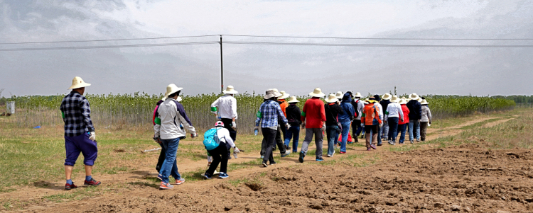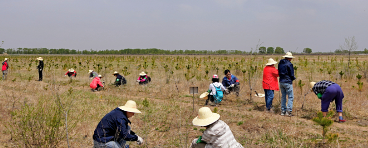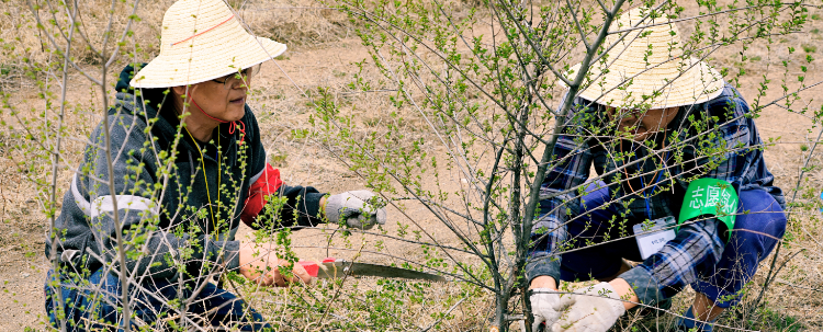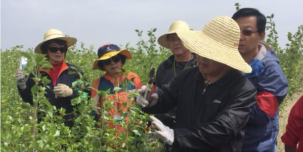 植树誓词鼓舞了校友们的士气。在廖理纯的带领下,大家干劲十足地投入到劳动中。第一项工作是为榆树和杨树苗剪枝,廖理纯为大家详细介绍了剪枝的要领。分配任务后,36个志愿者分为6个小组,由各组组长带领,开始了剪枝工作。什么样的枝子要剪掉,什么样的留下,大家边学边干、边讨论,相互交流配合,一个多小时后,完全熟练掌握了剪枝技术。