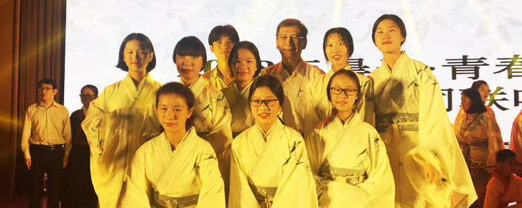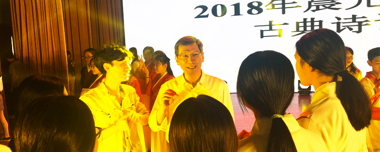 表演活动结束后,西园诗社成员积极向南山诗社指导老师、台湾辅仁大学中文系教授、著名诗词吟唱专家孙永忠教授求教。孙教授对西园诗社的演出给予了充分肯定:“我特别喜欢你们最后有关‘流水落花春去也,天上人间’这块效果的处理,这种处理有你们自己对诗词内涵的理解,也有自己学习吟唱的独特体验和感受。”西园诗社成员们认真聆听了专家的点评,并和孙教授进行了合影留念。
