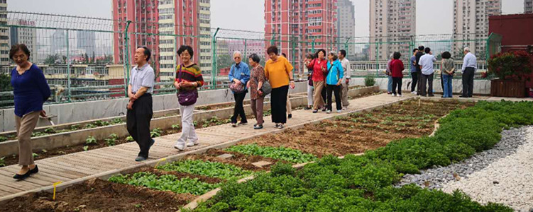 离退休党员教师参观立美楼屋顶种植园