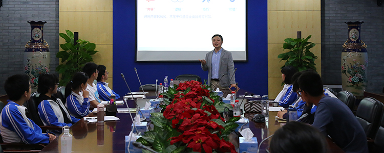 2018年4月19日下午,皇冠体育第九期学生领袖训练营在B102教室组织营员参加了《演讲:语言表达的艺术》主题讲座,邀请到清华大学演讲社社长刘充来做讲座。校团委书记任星阳和领袖训练营约20位营员参加并认真聆听了本次讲座。