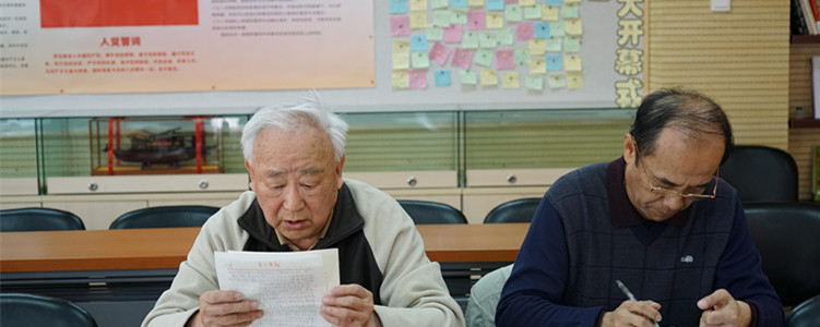 离退休第四党支部书记曹文彬老师(中)述职