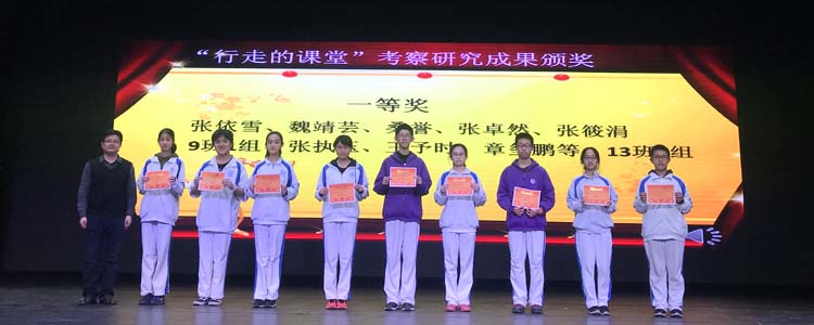 张彪老师为“行走的课堂”考察研究成果一等奖同学颁奖