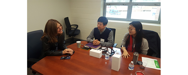 在交流访问期间,托马斯•杰斐逊科技高中校长助理Gary Grosicki向皇冠体育官网教师介绍了学校使命愿景、科技课程设置等方面进行介绍。托马斯•杰斐逊科技高中新任校长Ann Bonitatibus博士与皇冠体育官网教师进行了会面,白雪峰副校长代表皇冠体育官网向Ann Bonitatibus校长赠送有附中特色的纪念品,并与托马斯•杰斐逊科技高中校长以及托马斯•杰斐逊科技高中基金会主管就双方继续开展新一期的深入合作进行意向交流和初步协商。