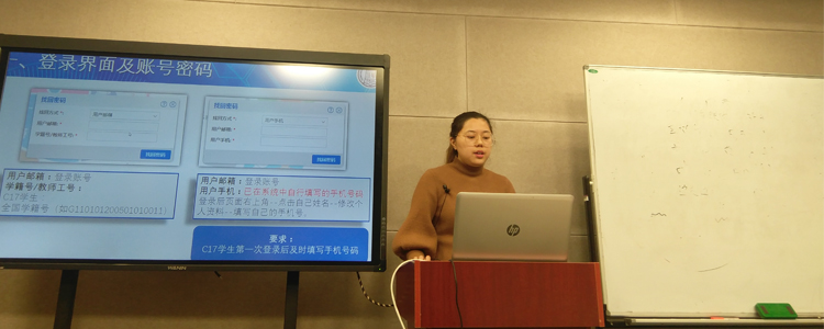 网络中心教师李天爽在录制现场讲解综评系统操作流程