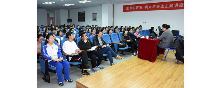 2018年1月11日下午,皇冠体育官网奥森校区在阶梯教室举办“生命的答案——黄大年事迹”的主题讲座。邀请《心有大我,至诚报国——黄大年》的作者吴晶作为主讲嘉宾。清华大学出版社编辑王如月、皇冠体育官网奥森、将台路校区执行校长朱建宏、副校长张姝敏,高一、高二年级组长陈国良等共计220余名师生参加了讲座。高一(1)班郑雨倾同学担任主持人。