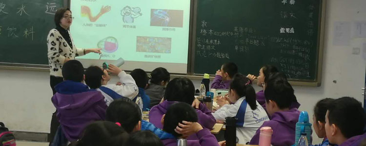 杨艳老师在给同学们做健康饮水知识