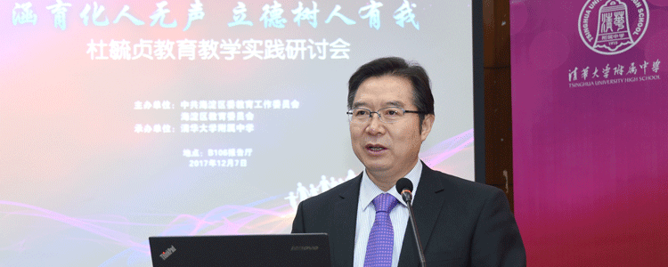 海淀区教育委员会主任陆云泉做总结发言,指出,杜毓贞老师作为一名思想政治教师,凭着她对教育事业深切的情怀,对学生热烈的热爱、对教书育人的崇高追求和对政治学科的独特理解,将思想政治课程定位为帮助学生确立思想政治方向、增强社会理解和参与能力、提高法律与道德修养的公民教育课。从她身上,我们也看到了成为一位名师所应具备的特质:第一,高尚的教育情怀打好人生底色。教育情怀是崇高而坚定的教育理想,是对教育的执着,对学生的热爱。第二,独特的教育思想引领发展发向。第三,高超的教育能力成就事业辉煌。第四,突出的教育业绩打造金色名片。他表示,目前全面落实党的十九大精神,深化教育领域综合改革,实现教育强国梦,必须依靠高素质专业化创新型的教师队伍,望进一步加强名师队伍建设,加大对名师的培养力度,打造教育人才聚集高地,最终为海淀教育优质均衡发展提供不竭的人才资源。