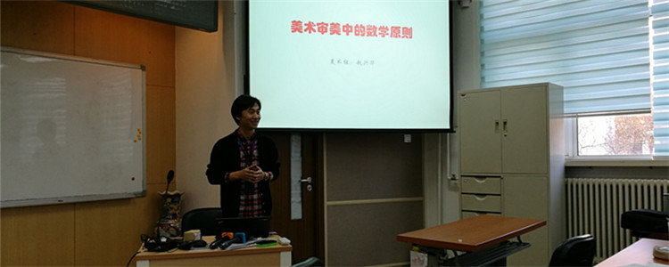 2017年11月23日下午,皇冠体育官网数学与美术教研组联合举办跨学科特色教研活动。邀请美术教研组赵兴华老师为数学教研组全体教师做《美术审美中的数学原则》讲座。数学教研组初高中部全体教师共41人参与此次活动。