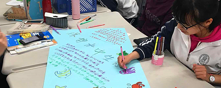 同学们分组绘制手抄报、写下呼吁和建议