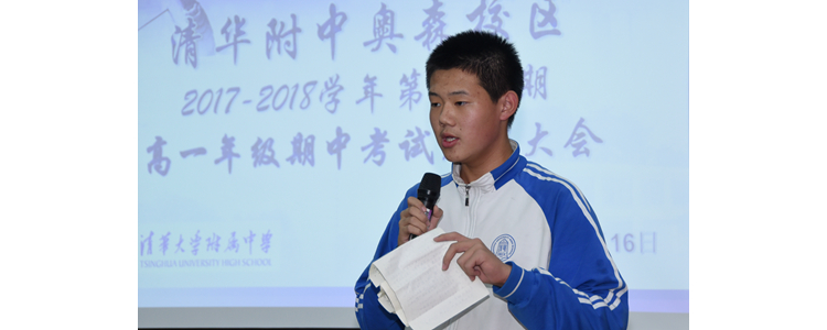大会表彰了期中考试总分优秀学生和单科成绩特优学生,伍玉旻、王国郦等同学分别作为期中考试中的优秀代表上台领奖。大会还邀请了高1701班的伍玉旻同学和刘洋同学分别作为年级总分第一和数学单科第一的优秀代表为全体同学作学习经验的介绍和分享。两位同学从自身的学习经验出发,生动地阐明了好的学习方法对于成绩提升的重要作用。