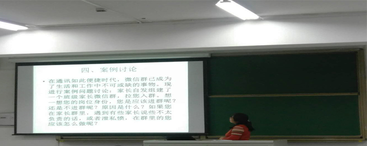 最后,会议就微信群在目前工作和生活中的使用情况展开了案例讨论。全体教师按高中英语组、初中英语组和体育教研组分为三组,以“作为教师的您是否愿意加入由家长自发组织的班级家长微信群?原因是什么?如果在家长群里遇到有些家长说不太负责的话您会怎么做?”为题,进行了热烈讨论,大家纷纷表达出自己的见解和想法,各小组最后就本组的讨论结果进行了分享和交流。体育组代表付帅老师提出:家校联系要组织常态性联系服务活动,要与家长开展心连心结对活动并与学生手拉手互动。