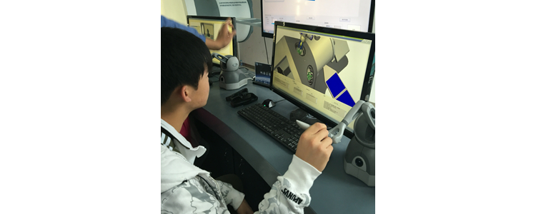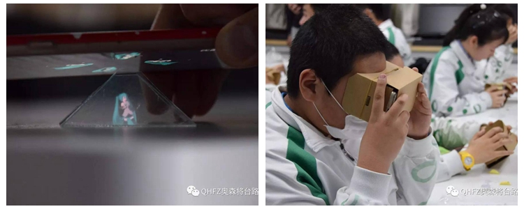 学生在创客教室学习全息投影和虚拟现实技术