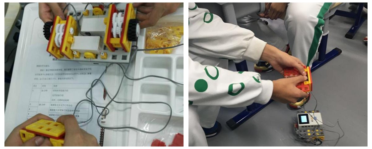 学生进行机器人测试
