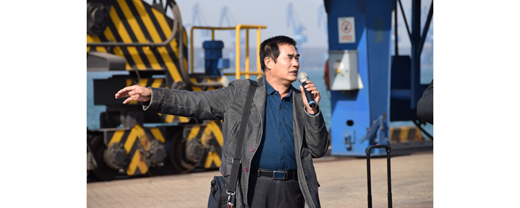 研学第一站是曹妃甸工业区。唐山工业职业技术学院督学专家孟繁荣为大家讲解曹妃甸的历史、码头以及工业区的今日成就。