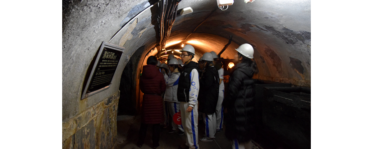 研学第四站是开滦国家矿山公园。展馆门前用青铜雕成的劳动人民雕像,展示了唐山人民锲而不舍的劳动精神。馆内,通过3D影片学生们了解煤的形成过程,并欣赏煤所制成的精美工艺品。接着,讲解员带着学生们“下矿”体验参观,学生们了解了采矿工人的生活以及采矿技术的变迁。