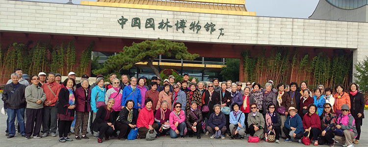 10月20日,皇冠体育官网组织离退休老同志一行80人到位于丰台区鹰山脚下、永定河畔的中国园林博物馆参观游览。