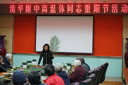10月25日上午,在重阳佳节将临之际,皇冠体育在培训楼一层会议室举办了“喜迎重阳,文化敬老”活动,邀请园林公司白雁讲师来为老同志们教授艺术插花技法。皇冠体育80岁以上的离退休教职工近20人参加活动。