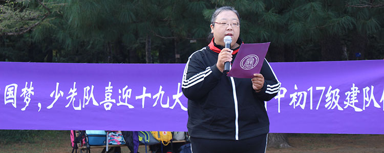 初17级年级组长张晓明老师宣读了各中队委员和中队辅导员名单,并向全体初17级少先队中队代表授中队旗。随后中队委为辅导员老师戴上鲜艳的红领巾。广场上掌声经久不息,饱含着作为一名光荣少先队员的无限欢欣与自豪。