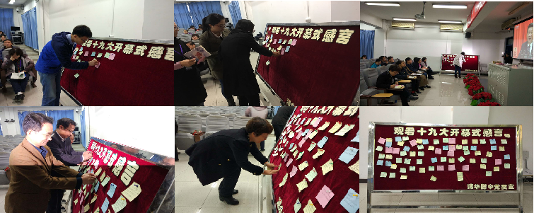 大会开幕会上,习近平总书记代表党中央作工作报告。三个多小时的报告让老师们倍感振奋,充满期待和满怀信心。报告结束后,老师们纷纷主动写下自己的感想和心声。“自信、自豪、自强。自信来源于我们五年来的伟大成就。自豪来自于对伟大的中国共产党的认识。自强来自于中国特色社会主义进入新时代的伟大使命。不忘初心继续前进,以全新的精神状态,自强不息,推进四个伟大,是我们共同的责任使命。”“人民对美好生活的向往就是我们的奋斗目标。爱你,我的党!加油,我的国!”在国外旅游的离退休老师利用手机上网收看直播,从凌晨四点多的东欧发来消息:“我正在东欧旅游,能从手机上看到直播,我们的党,我们的祖国太伟大了!”