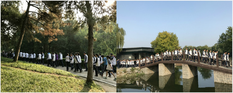 同学们秩序井然走往集合点