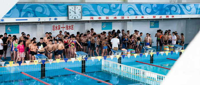 学生们等待上游泳课