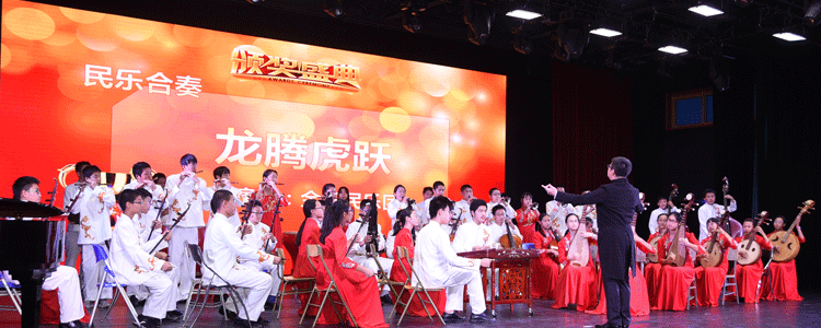 庆祝大会在校民乐团合奏的《龙腾虎跃》乐曲声中拉开序幕。