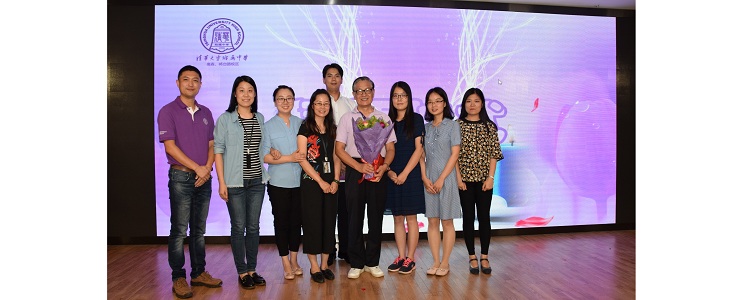 物理组教师为师傅陈国良老师(中)献花