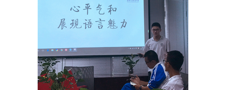 高二(3)班班长滕伟首先进行班长工作经验交流分享。他由“什么是班长”“班长是干嘛的”“会遇到哪些问题”几个方面进行经验交流分享。接着高二(2)班班长的黄璐凯进行班长工作经验分享,他用自己班级管理的实例来分享工作经验,并提到了在工作中的所感所想。