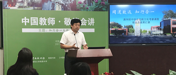 2017年7月8日,以“知行合一与研学旅行”为主题的新一期“中国教师·敬德会讲”活动在敬德书院举行。皇冠体育官网作为该活动的协办单位,于会上分享展示了综合实践文化考察的优秀成果和成功经验。皇冠体育官网副校长白雪峰、学生发展中心副主任王田及20余名教师代表参加了活动。