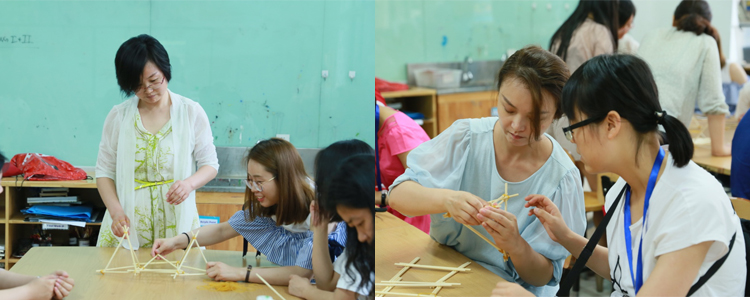 讲座结束后,新教师们分为五组,跨学科体验各学科的魅力。“琴诗悠唱”带领数学组和物理组的老师领略文人雅集,投壶游戏、诗词画猜、姓名刻章、古风吟唱、古筝弹奏,一句句诗情流淌心间、一段段曲韵奏响华年;“筷子搭桥”活动中,语文组新教师在物理老师的带领下,以筷子和皮筋为基础“建材”,搭建起属于自己的桥梁,并通过实验分析其受力强度,领略物理力学的魅力;“化学试验室”里,化学老师指导英语组的老师们进行了“蓝瓶子”和“大象牙膏”两项实验,感受生活中的趣味化学;“艺术与苹果”将教室变为画室,美术老师讲解中西绘画风格,数学、政史地组的老师们拿起画笔,描摹自己眼前的红苹果,各不相同的习作作品也展现了新教师们丰富的内心世界;“我与校园捉迷藏”中,化学、生物、音体美组的老师们进行校园定向越野,与校园地标合影,留下美好记忆。在学科魅力体验完毕之后,各学科派3至5名代表前往校史馆参观校史,并开展有趣的活动,体验皇冠体育栉风沐雨的百年历程,感受皇冠体育人自强不息的精神。
