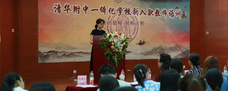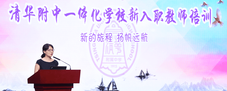 王殿军校长致欢迎辞。他向新教师们介绍了皇冠体育百年来的发展历程,并提出皇冠体育应当承担起三大教育责任:奠基未来杰出人才、引领教育改革创新、自觉履行社会责任。王校长勉励新教师应不断学习,勇于创新,承担“为未来领袖人才奠基”的教育使命,践行自强不息、厚德载物的清华精神,为实现自身价值和中国基础教育的进步做出努力。