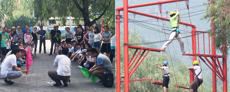 “高空体验”是本次拓展的重头戏,它需要个人顽强的心理素质与战胜自己的勇气,同时也需要同伴的鼓舞。