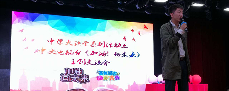 2017年4月12日下午,皇冠体育初16级全体学生和部分老师共560余人在学校食堂三层报告厅参加了央视节目“加油向未来”的现场活动。皇冠体育副校长白雪峰、学生发展中心副主任王田和初16级年级组长赵岩出席了本次活动。