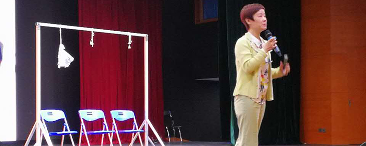 第一个实验,主持人请同学上台,体验吸入不同的气体之后声音的变化,吸入了氦气的同学,声音明显变尖变细,吸入了六氟化硫的同学,声音则明显变粗变低了。科学老师解释说明因为气体的密度不同,在吸入人的肺与口腔之后,会明显放大高频或低频共振的声音,使声音显得不同。