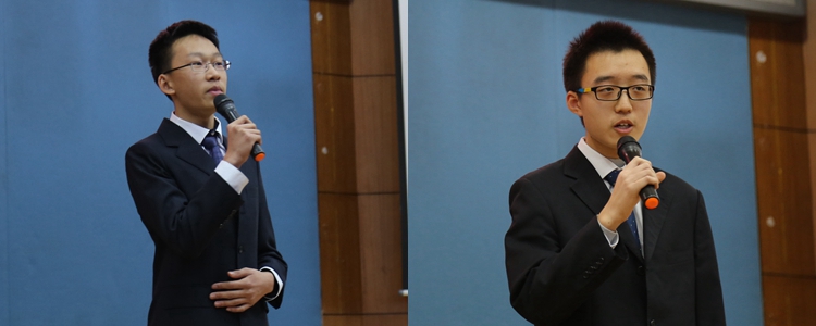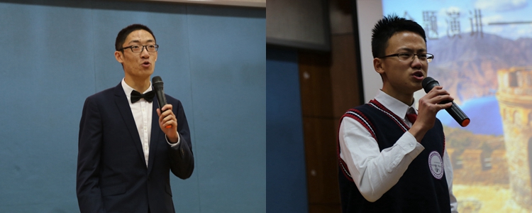 高1509班刘靖邦(左)与高1611班陈易磊(右)精彩演讲现场