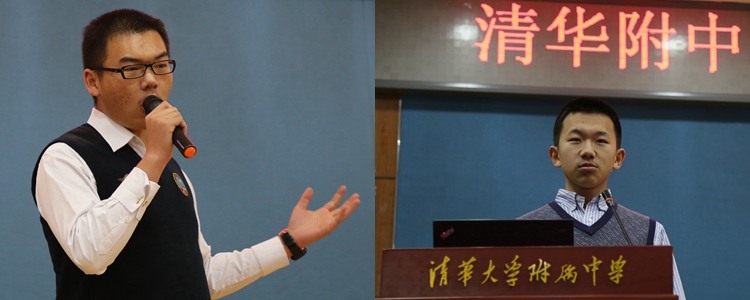 高1603班王子豪(左)与高1615班贾迅(右)精彩演讲现场