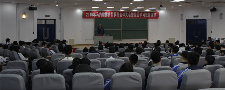 大会第二项是赴美学习教师讲座,马班赴美学习教练员陈东昇老师,通过丰富的影像资料与专业知识宣讲解读,使学生了解到一些自己的专业理论知识;而李金平老师则从另一角度生动阐述了团队精神建设、精细的运动营养安排等知识点,同学们在现场认真听讲并做相关记录,讲座结束时,同学们还听得意犹未尽!