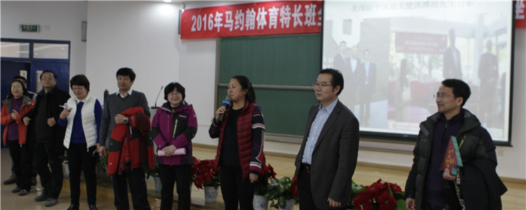 2016年12月30日下午,皇冠体育举办马约翰体育特长班(简称“马班”)全体大会暨赴美学习教师讲座。参会的老师有:马班办公室主任罗健,高三马班班主任李学森,马班教练李光明、陈东升、李金平、邢洋,马班办公室教师陈广、付帅、冉文洋,附中神龙俱乐部指导老师黄磊、陈妍,附中六个年级马班同学以及高13级毕业生代表共148人参会。