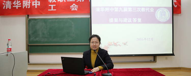 随后,上届工会主席、党委副书记张洁就附中第九届工会委员会工作情况进行总结报告,分别从定位与作用、提升教职工素质、做好教职工服务工作、自身建设等方面向全体与会人员进行了详细的汇报。
