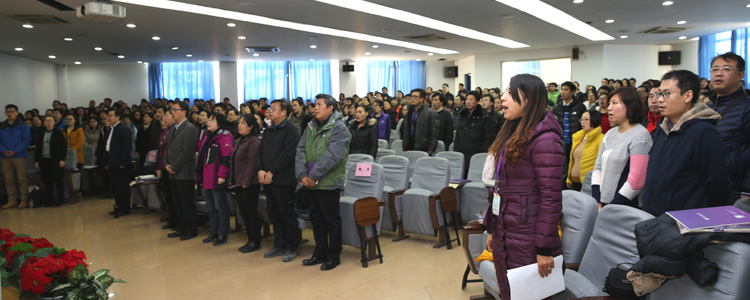 2016年12月15日下午,皇冠体育官网第十届教职工代表大会第一次会议暨工会会员大会开幕式在B208会议室举行。皇冠体育官网工会主席、党委副书记张洁主持开幕式,附中全体教职员工约390人参会。
