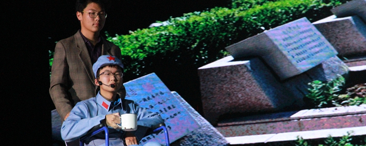 高1606班的主题是“爬雪山过草地”。他们以独特的方式——一位参与红军长征的老先生的视角来构架起整部短剧。展现了这挣扎的、悲戚的,凝筑了无数战士的血与泪的长征岁月;这辉煌的、壮美的,点亮了无数战士的青春年华的长征岁月。
