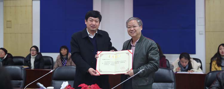 白雪峰副校长(左)为鲍鹏山教授颁发聘书